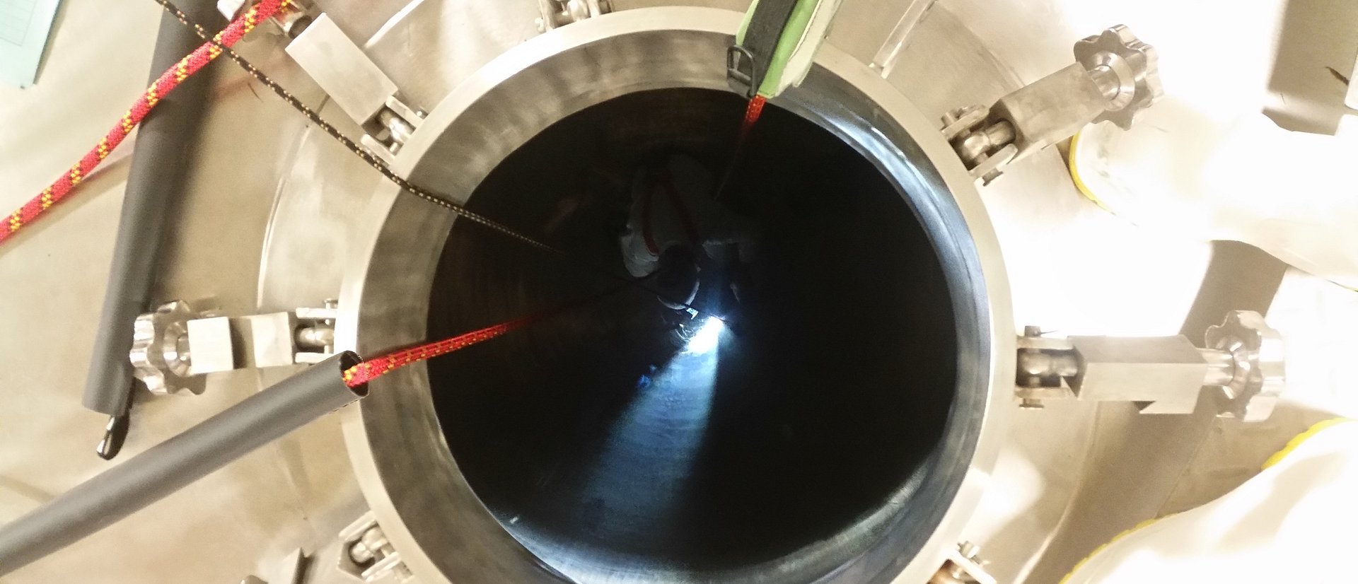 Highly trained staff undertake intrusive maintenance in a critical hygiene Milk Powder vessel.